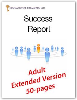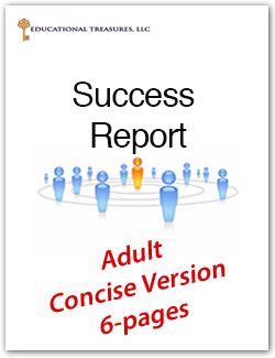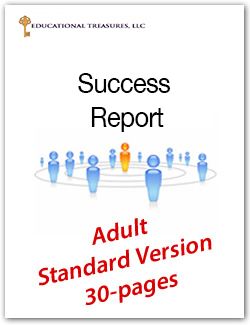This English Standard Adult version of the Success Report is a comprehensive personality test (assessment) product. This version is designed to offer extensive feedback while being shorter than the adult version that has product code 3000 (30 pages vs. 50 pages).